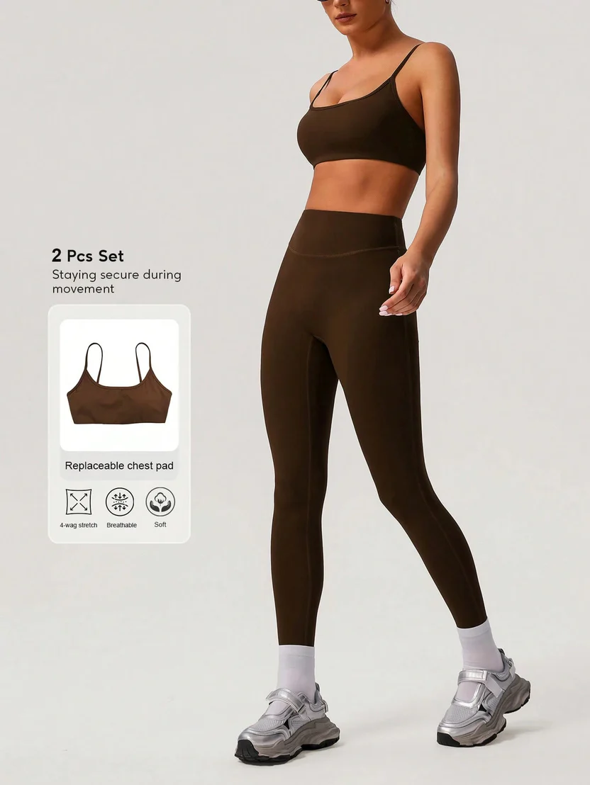 This sleek two-piece active set includes a supportive contrast-trim crop top and matching high-waisted leggings designed to enhance your silhouette. Made from a soft, stretchy, and breathable performance fabric, the set offers a sculpting fit that moves comfortably with your body, making it ideal for workouts and everyday athleisure looks.